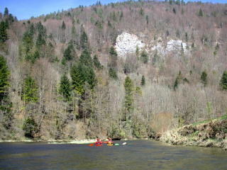 Nach 3,5 Kilometern lässt die Strömung deutlich nach. Das zunächst noch schmale Waldtal öffnet sich langsam. Kleinere Weideflächen begleiten bald wieder den Fluss. 100 m nach einem auffällig einsam stehenden weißen Haus am linken Ufer befindet sich zwischen der Talstraße und dem Waldhang ein Park- und Rastplatz (> N 47° 01' 51'', E 06° 30' 13''). Hier sollte die Paddeltour am linken Flussufer beendet werden. Hiernach verläuft der Doubs wohl weiterhin durch ein Waldtal. Hier sind die Ufer aber teilweise reguliert und der Fluss weisst nur noch Zahmwasser zwischen größeren Weideflächen auf. Die nächstgelegenen Campingplätze die auch schon Ostern geöffnet haben befinden sich südöstlich von Pontarlier und am südwestlichen Ortsrand von Ornans (Loue). Hinweis: Alle Fotos und Infos basieren auf den 02. April 2012 und sind von Mathias Dieckmann. Der Flussabschnitt hatte an diesem Tag einen sehr niedrigen Wasserstand. Der o.g. Pegel Doubs zeigte 4 cbm/sec an. Alles war durchgehend fahrbar. Die wildwassertechnischen Bewertungen beziehen sich auf mittlere Wasserstände. |